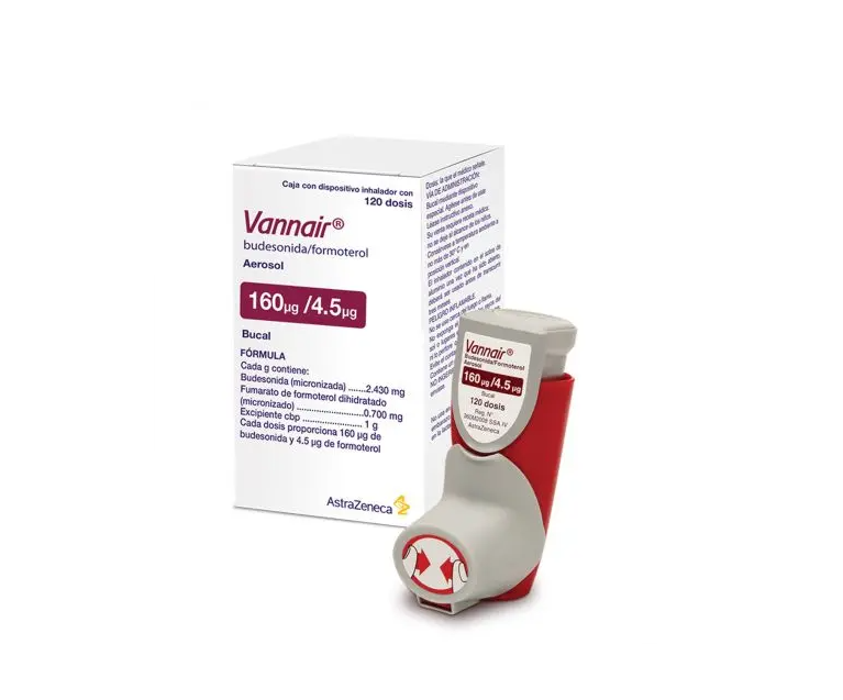 Astra Zeneca® . Vannair . Budesonida 160µg/ Formoterol 4.5µg . 1 Caja de 1 Dispositivo inhalador con 120 Dosis